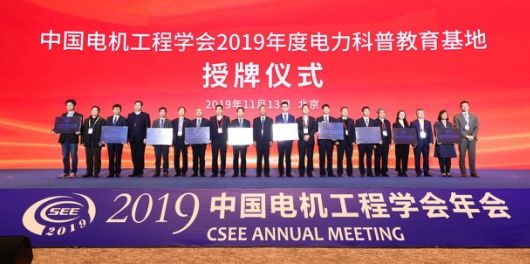 2019年11月13日,2019年中國電機工程學會年會在京開幕。作為能源電力領(lǐng)域的行業(yè)盛會,本次會議深入貫徹十九大清潔綠色能源發(fā)展理念,以“清潔能源,智慧電力,美好生活”為主題,邀請了15位院士及140余位專家現(xiàn)場作交流報告,來自政府、國內(nèi)外高校及企業(yè)的2000余人參會交流。開幕式上舉辦了2019年度電力科普教育基地授牌儀式,本年度共26家單位入選。天目湖先進儲能技術(shù)研究院作為2019年新入選單位代表,獲“2019年度電力科普教育基地”正式授牌。電力科普教育基地認定工作自2013年啟動以來,截至2019年底,全國范圍內(nèi)共命名電力科普教育基地99家。此次,研究院獲授牌,是學會對研究院在基礎(chǔ)教育、大眾科普等方面工作的肯定,研究院將繼續(xù)發(fā)揮自身優(yōu)勢,主動承擔社會責任,切實履行社會義務(wù),為科學技術(shù)知識宣傳普及工作而奮斗。